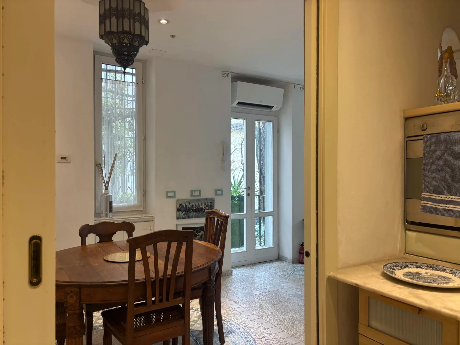 Raffinato bilocale in stile mediterraneo disegnato da un artista siciliano, milanese di adozione. Una chicca dal sapore esotico nel cuore del milanesissimo quartiere ticinese alle spalle del Naviglio Grande, vicino a ristoranti, botteghe e negozi di ogni tipo.