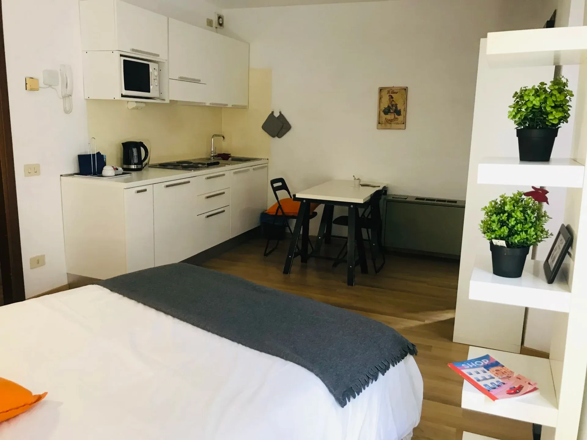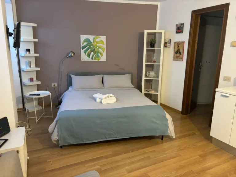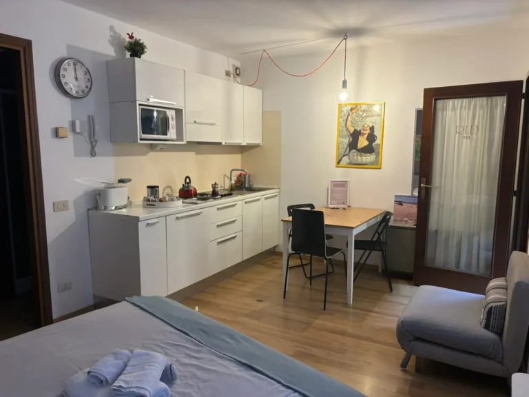 Silenzioso e comodo monolocale all’interno di un bel cortile di via Vigevano, base perfetta per chi cerca un posto tranquillo ma vicino a tutto. Veloce da raggiungere a pochi passi dalla metro di Porta Genova, vi si accede molto facilmente con le nostre chiavi virtuali e l’ascensore che conduce al primo piano. Tre grandi finestre danno luce allo spazio arredato con stile moderno ed essenziale, e diviso in ingresso con cucina attrezzata e tavolo da pranzo, poltrona lettura (che all’occorrenza può diventare terzo letto) e letto matrimoniale. Il bagno con doccia e bidet è separato da un antibagno con armadio e cassettiera.
